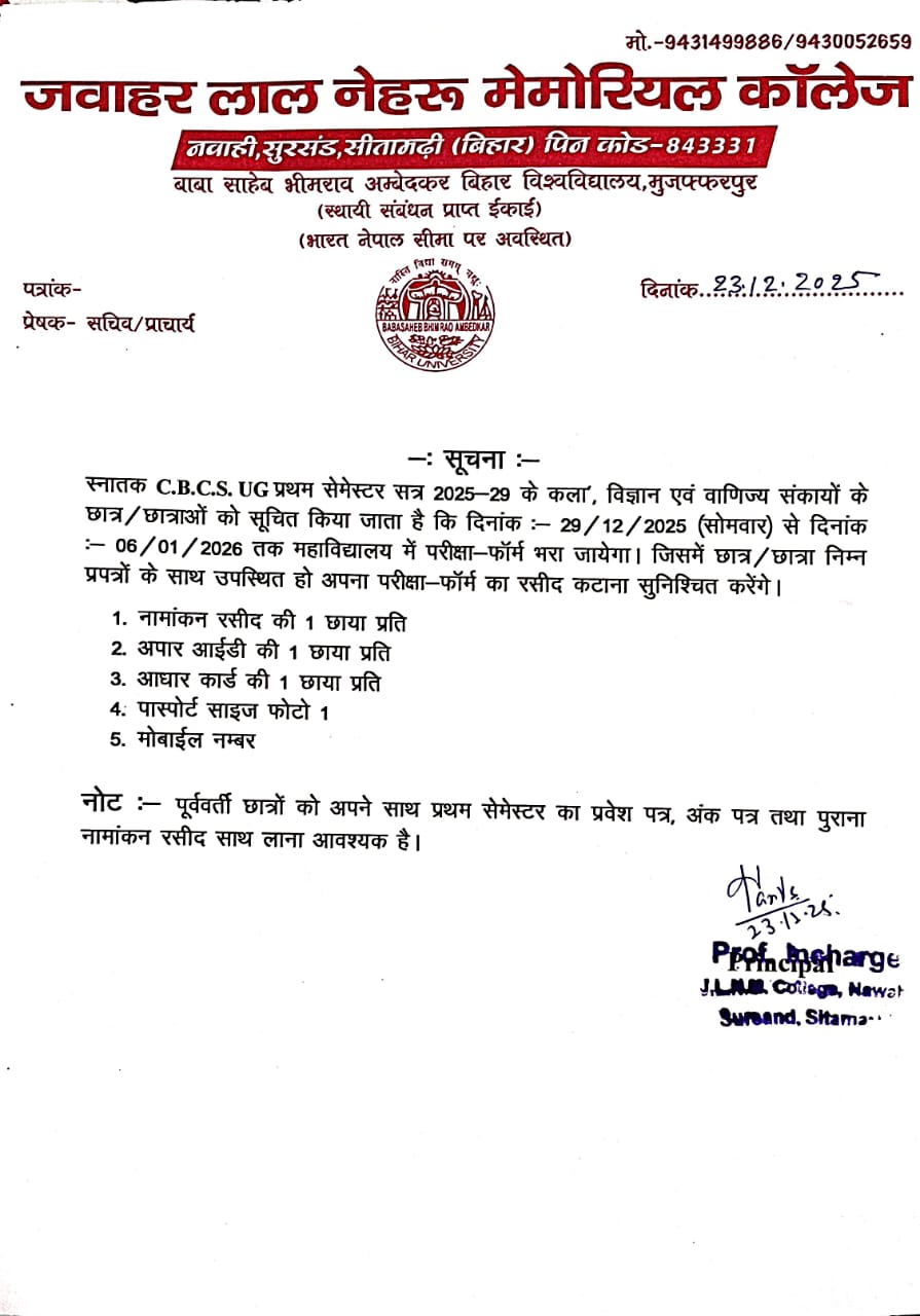 Jawahar Lal Neharu Memorial College Nawahi Sursand,Sitamarhi